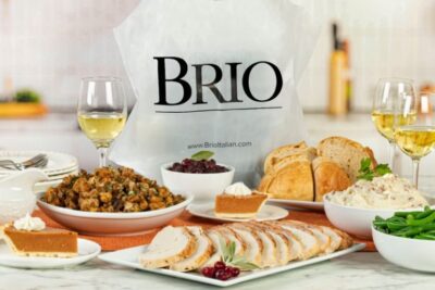 Brio offers Thanksgiving turkey dinners to-go or in-restaurant with Italian sausage stuffing and seasonal sides.